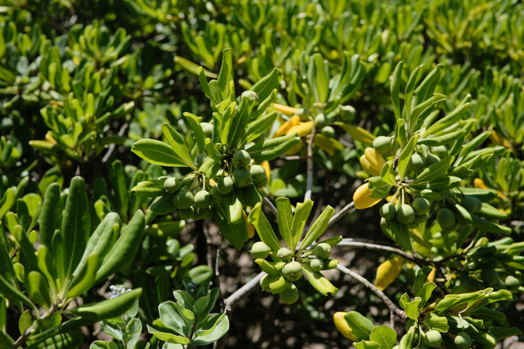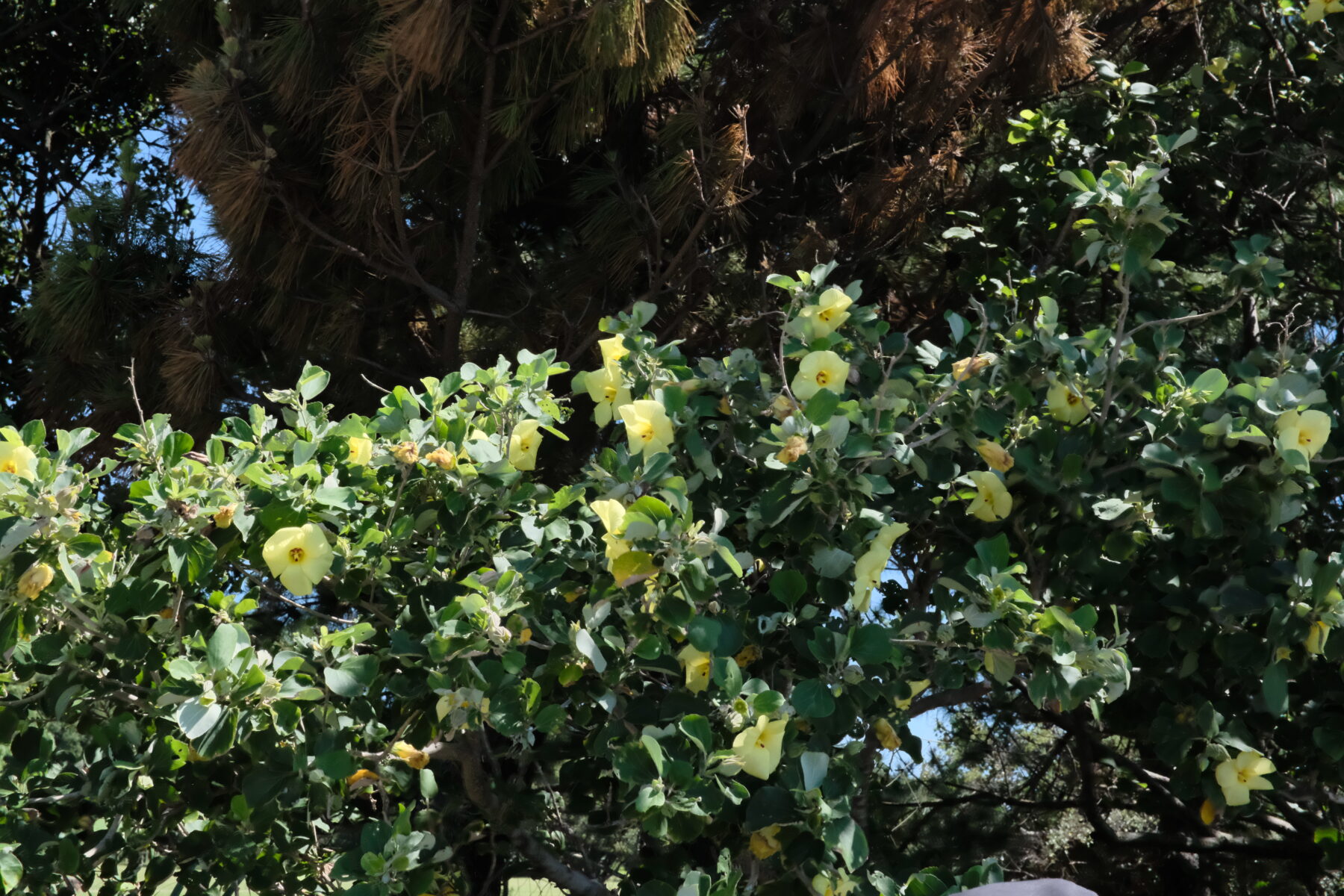 ハマボウは樹皮、繊維が強く、硬く折れにくい。枝はよく分かれ内側はうっそうと茂る。