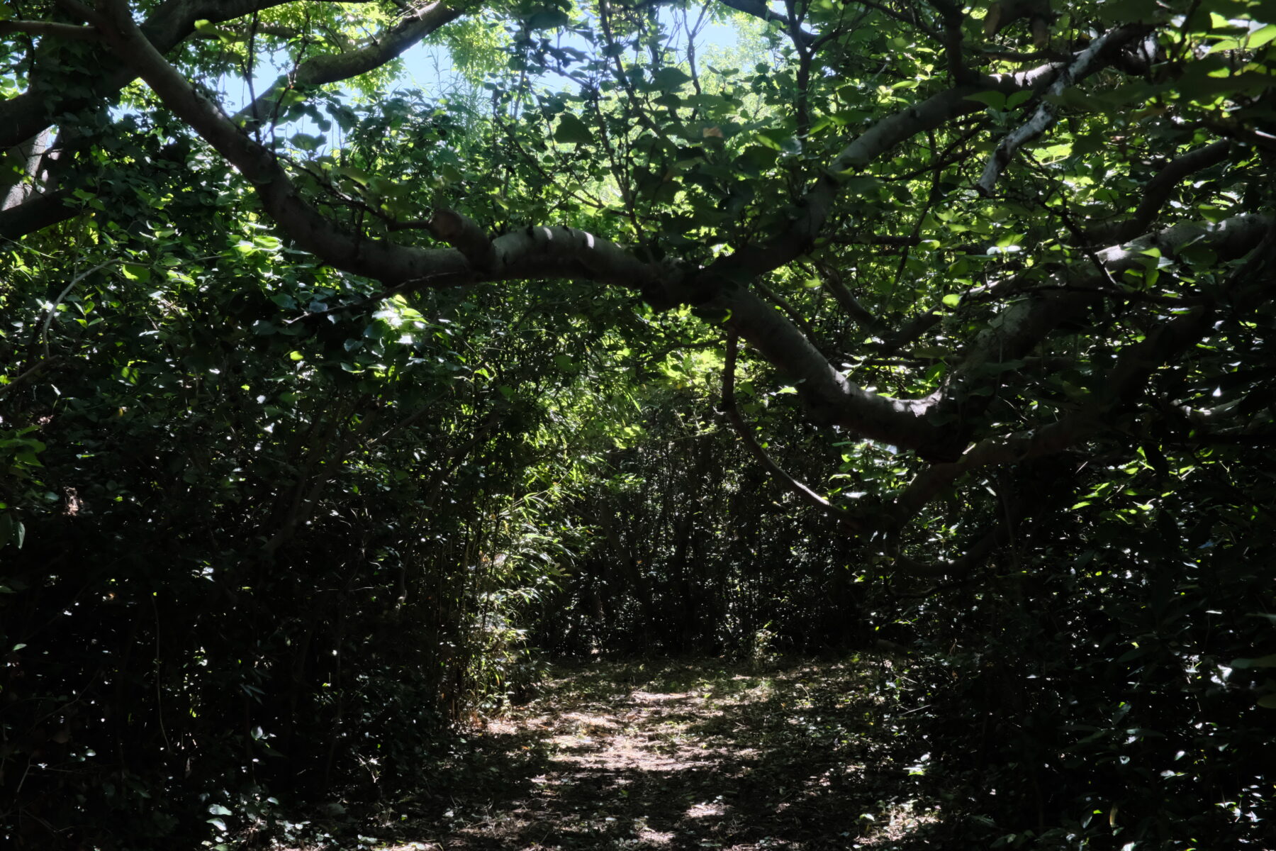 メダケ、シロダモ、ネズミモチなどと共に構成されており、通り抜けできる。