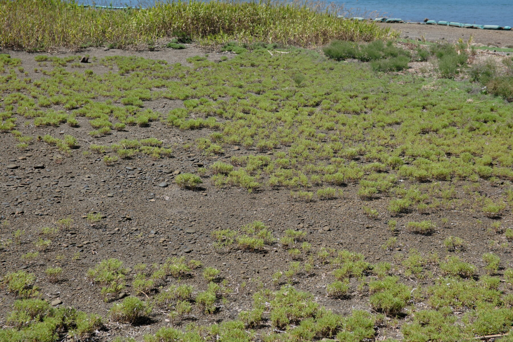淡路島で観察できるのは、成ケ島と津井の海岸のみ。海水が侵入する汽水域の泥土城に生息する。ハマサジなどと群落を形成している代表的な塩生植物。