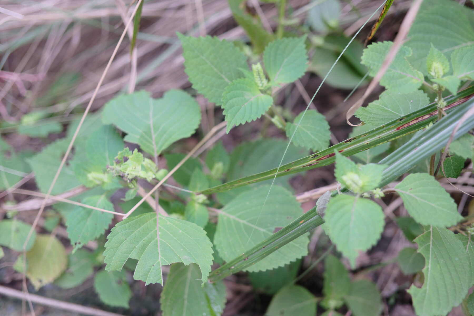 柏原山では道路脇にかなり多く見られる。交雑が多くトラノオジソやセトエゴマなどと判断が難しい。