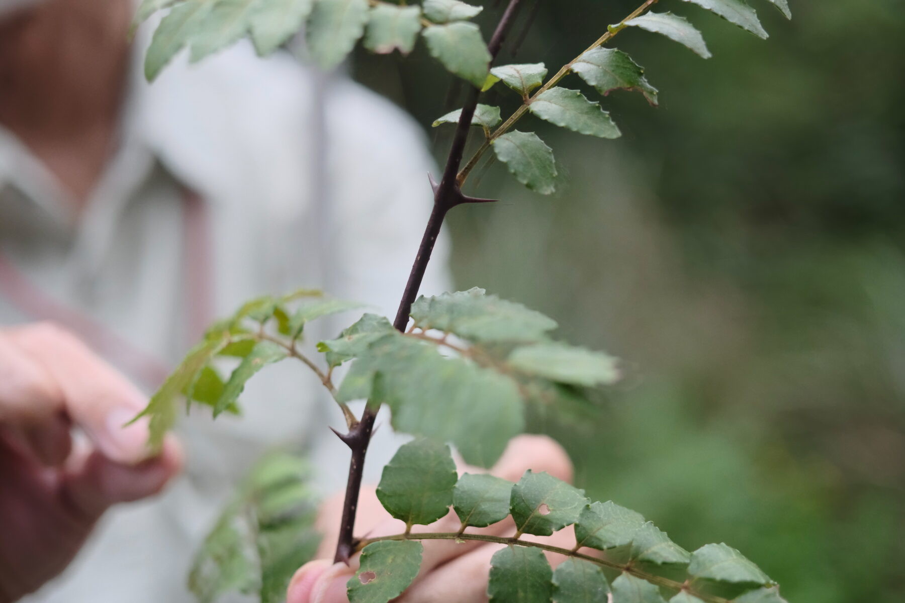 葉は互生し、奇数羽状複葉で、葉柄の基部に棘が2本ずつ対生してつく。葉には強い芳香があり、若葉は木の芽として食用される。また雌花は花山椒として、球果は香辛料としても使われる。