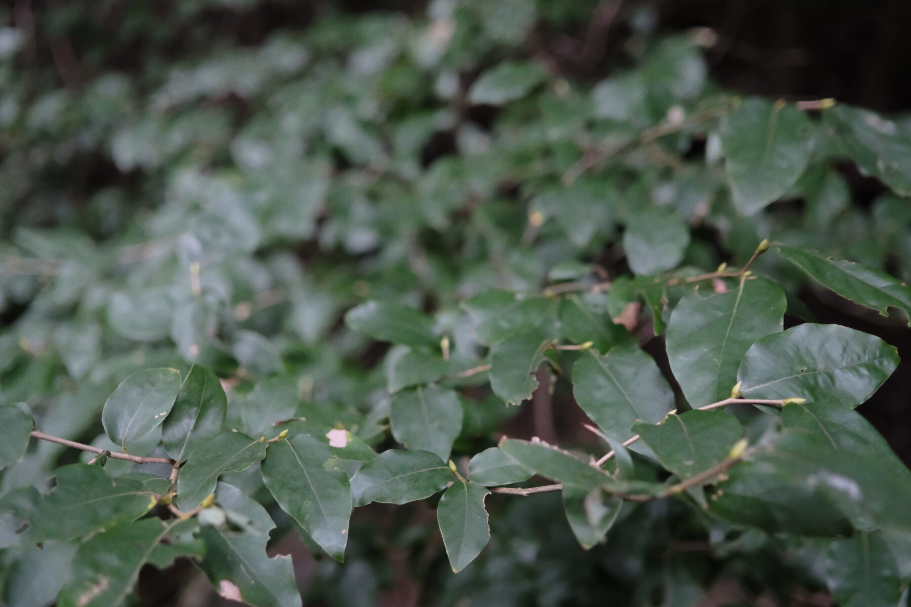 葉は互生し、厚くてかたい。新しい葉は、表面に星状毛が生えるため白っぽいが、成熟すると艶のある深緑になる。裏面は褐色から銀燭の鱗片が多い。