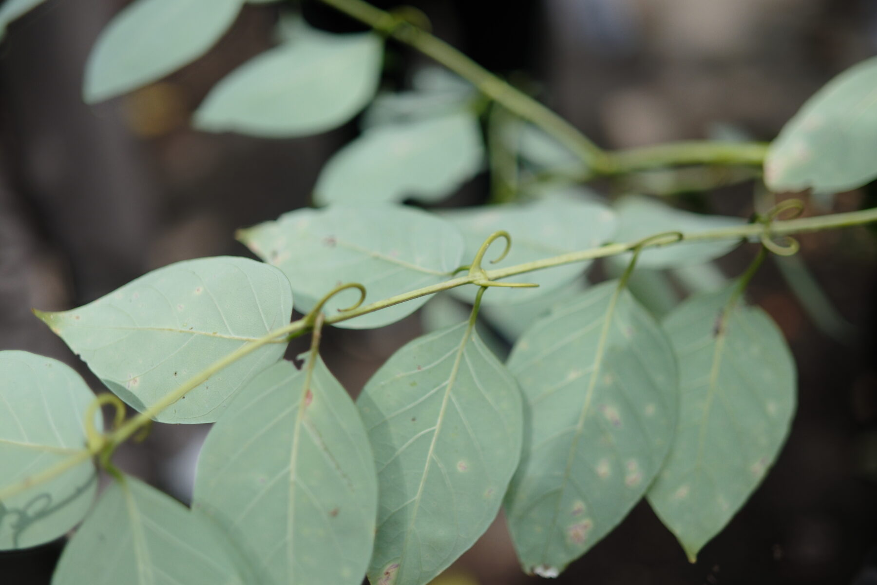 葉の基部上側に鉤がついており、先端を丸め周囲の植物に引っかけて生長するツタ性植物。鉤は規則的に2つ、1つ、2つ、1つとついている。鉤部分は、生薬、漢方薬に利用されている。南米ペルーのアマゾンの先住民族が伝承薬としていたキャッツクロー(アマゾン奥地に自生)と近縁種にあたる。