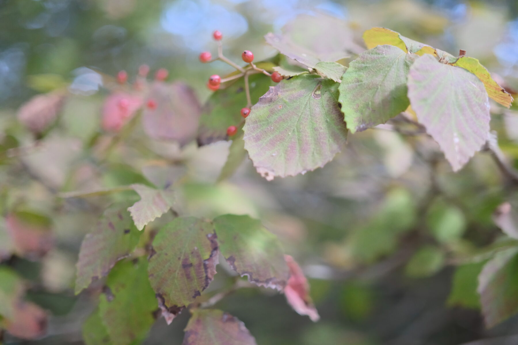 葉は丸みを帯びた菱形をおり、秋には紅葉する。