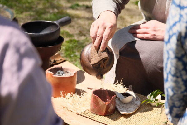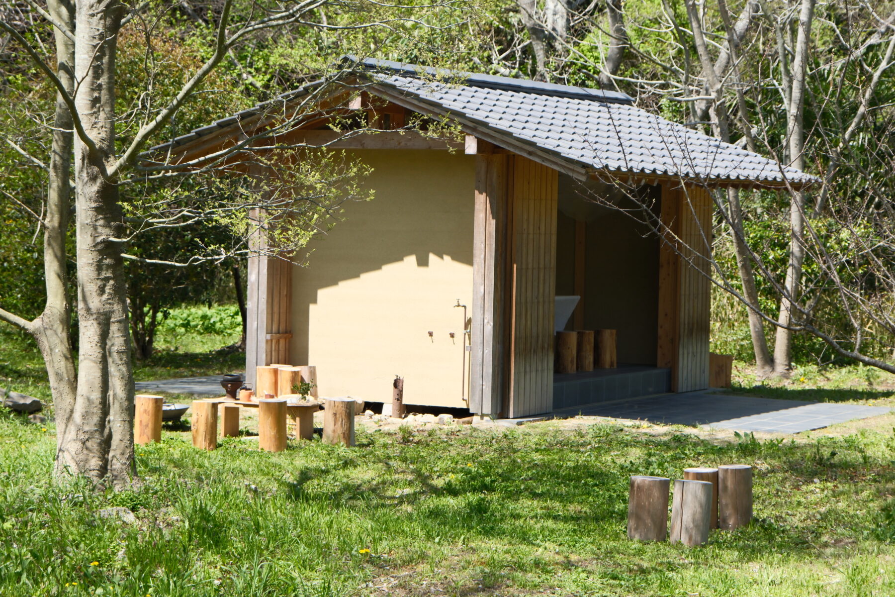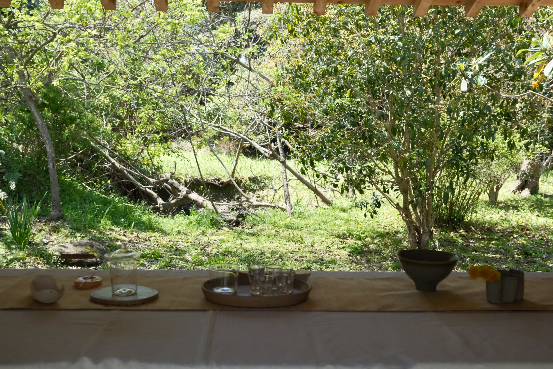若葉が芽を出し色鮮やかな木々の中で、暖かな陽だまりの中で、暖かいお茶を、食を、皆さんで囲んでゆっくりと味わいましょう。今回は、庭にある小屋にて3人で茶席を仕立てます。どうぞご参加ください。