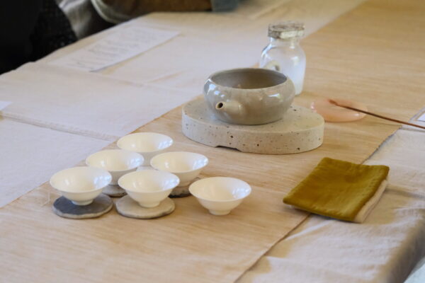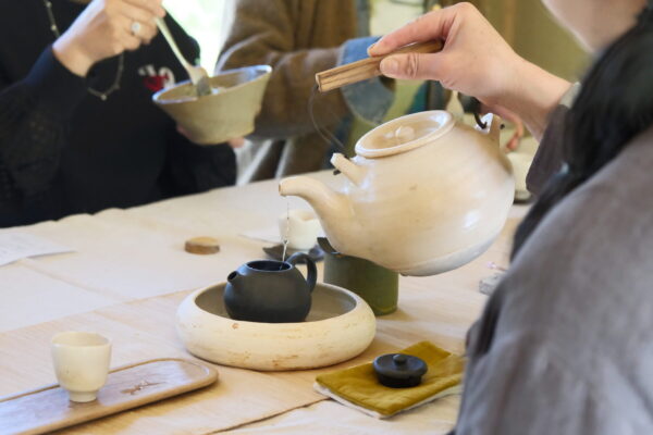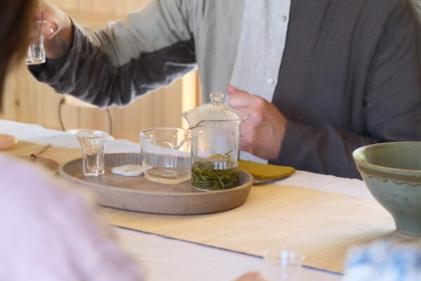 お茶事は、コミュニケーションツールのひとつとして続いてきた文化であり、同じテーブルを囲む方たちと共に場を作りあげます。普段の時間感覚から少し離れたゆったりとした時間がそこにはあり、心がゆるむ時間となるはずです。