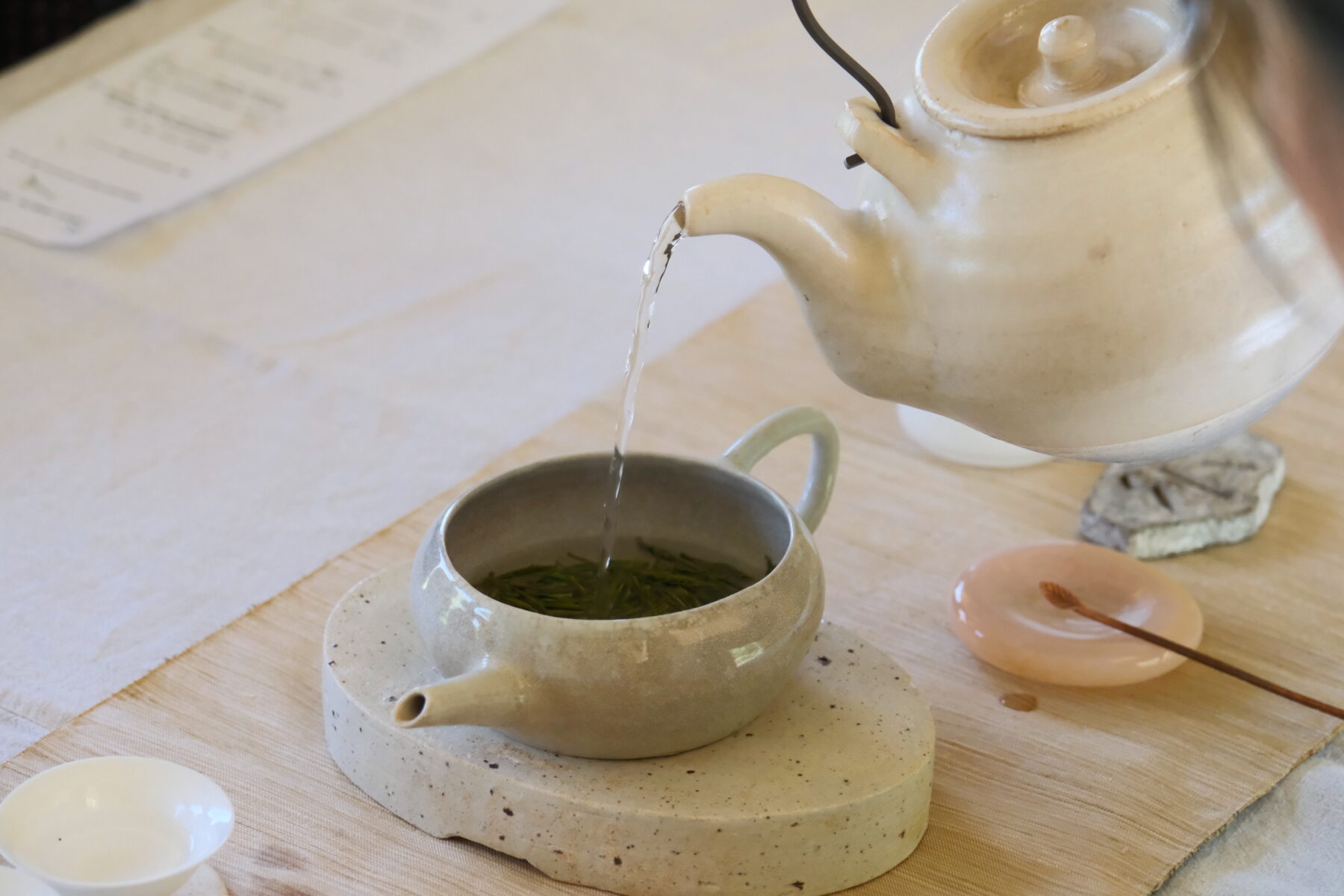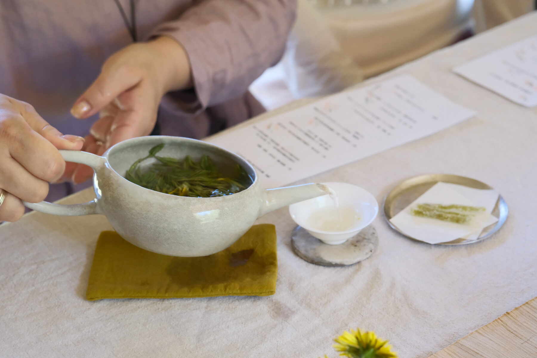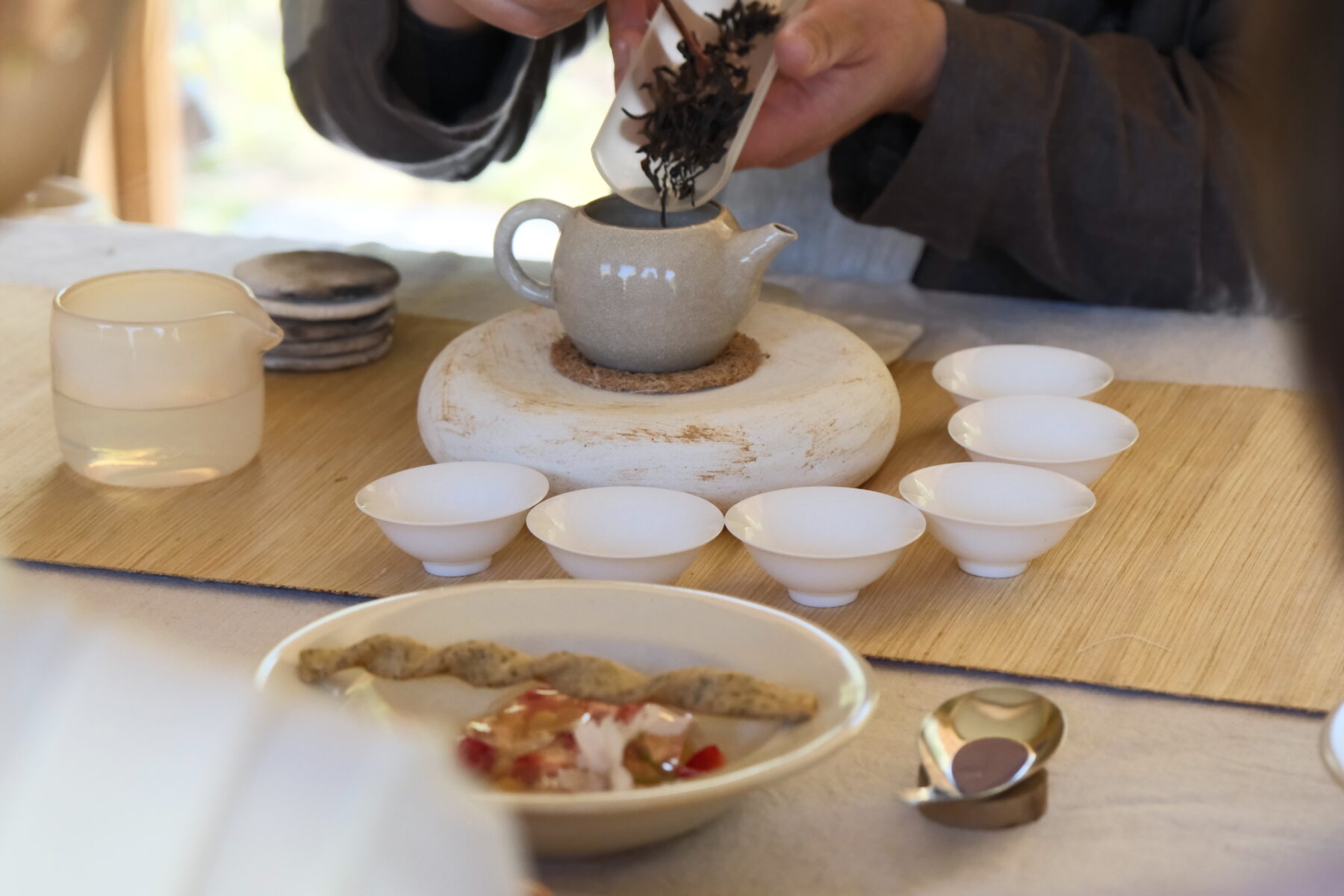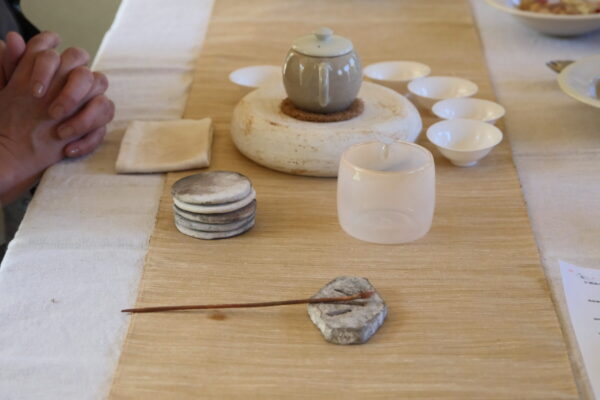 合わせた岩茶の力強さに負けるとも劣らない、春らしい香りと緑の素材の層をなす味わいは、シンプルながらインパクトのあるひとさらでした。