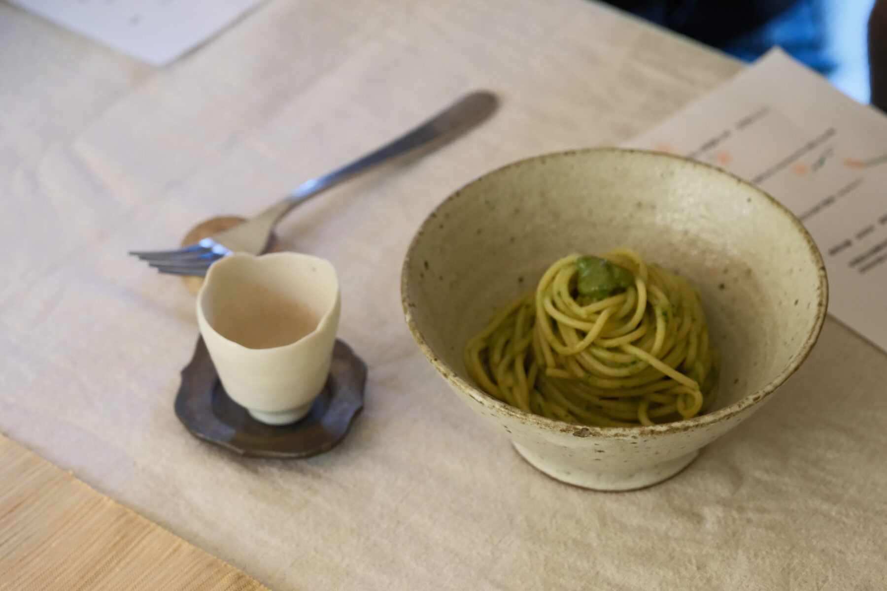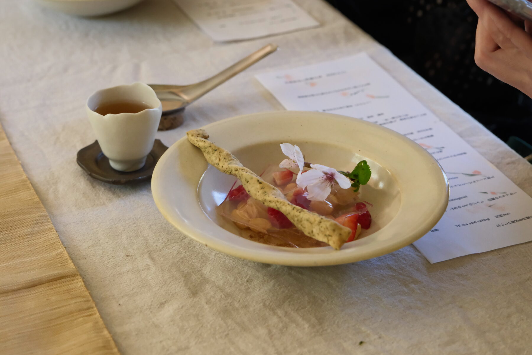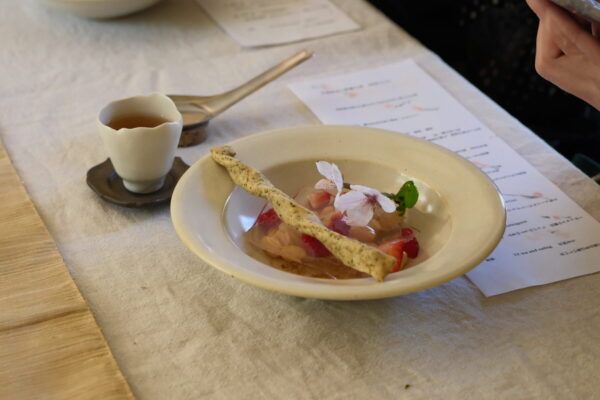 和ハーブや山菜を鰹と昆布の出汁でペーストにし、お茶に合う味わいに仕上げられていました。