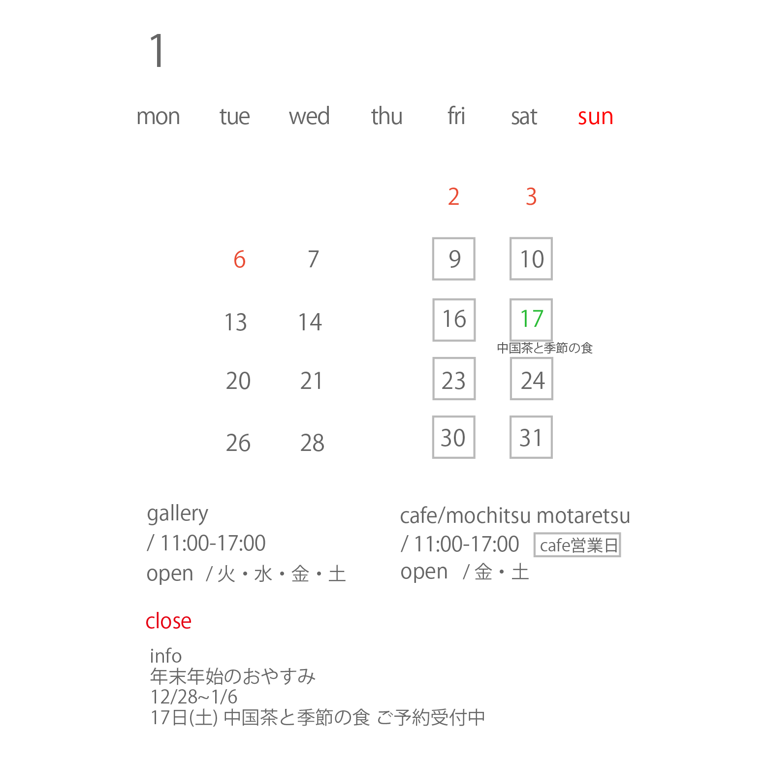 1月のcafe/gallery