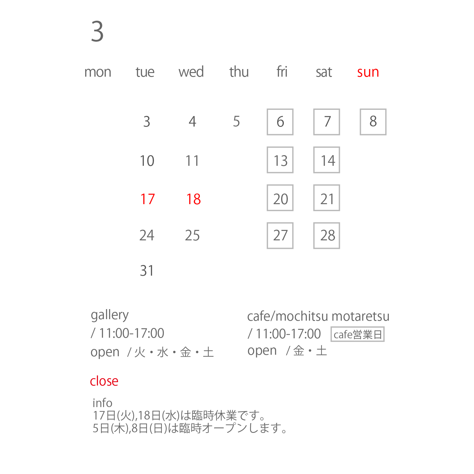 *3/8(sun) cafe+gallery 11-17:00